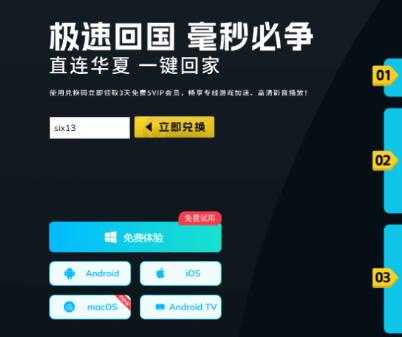 2、下載完成後按照提示登錄註冊,喺會員中心搵到【兌換碼】功能,使用【six13】兌換免費時長,之後就可以正常使用軟件。或者直接點擊:https://www.sixfast.com/tg-exchange 按照下圖所示填寫兌換碼【six13】,並按照右邊步驟註冊登錄Sixfast,領取免費時長。(支援手機同電腦使用)
