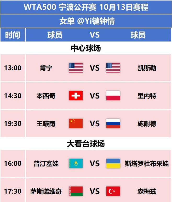 今次WTA500寧波站嘅賽事安排已經全部出爐,從簽表可以睇到各路高手嘅對陣情況。首輪賽事就已經充滿睇頭,多位種子選手將會迎戰實力強勁嘅對手。賽程安排得相當緊湊,每日都有多場精彩賽事上演,球迷們記得mark低心水場次嘅時間啦!
