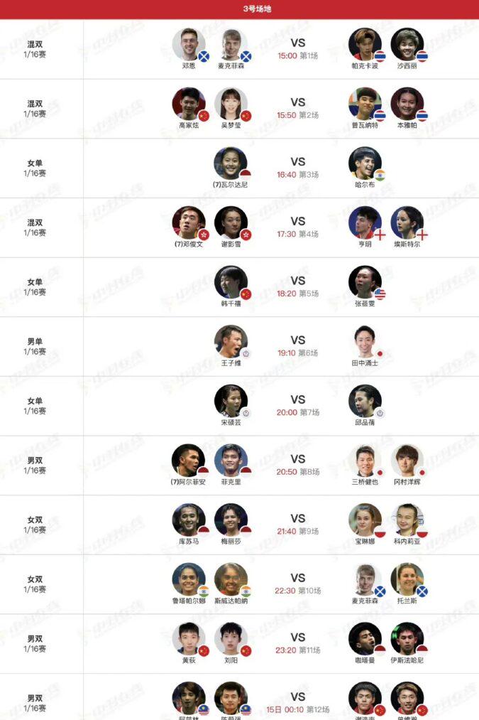 - 第11場:黃荻/劉陽🇨🇳 vs 🇮🇩咖塔曼/伊斯法哈尼