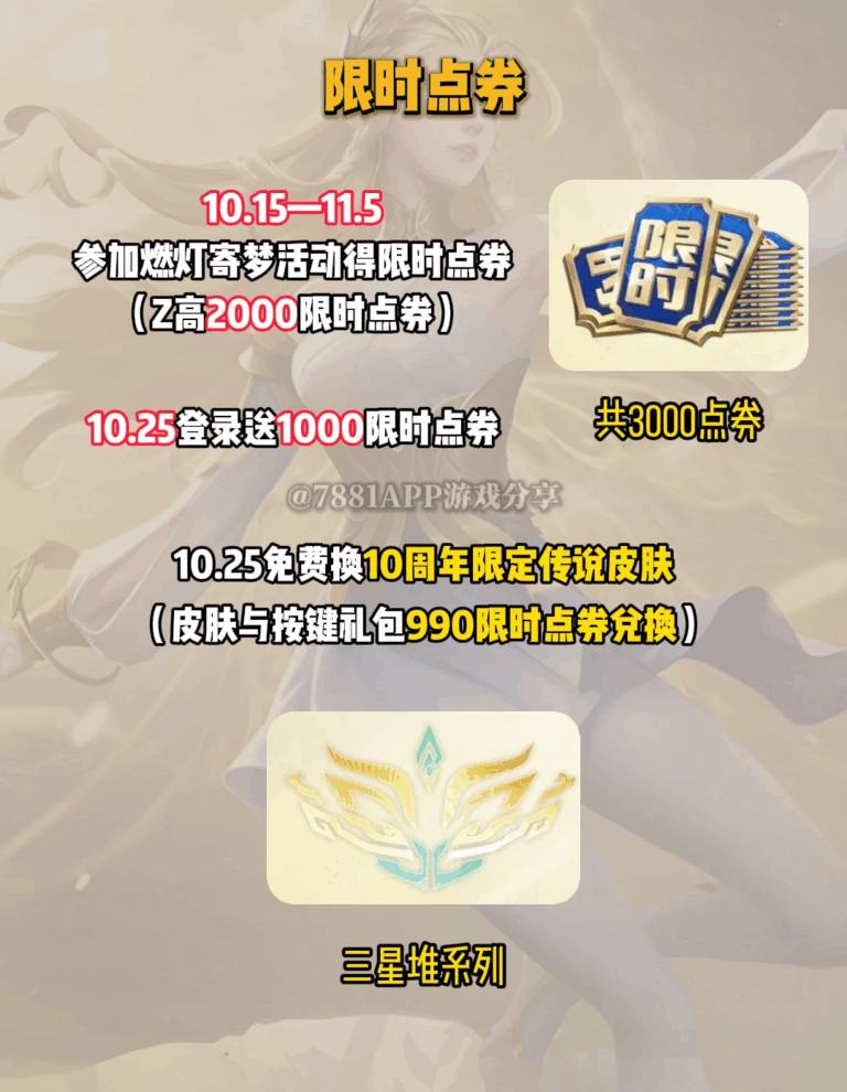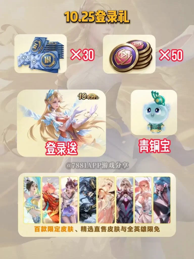 王者榮耀十週年慶典將會喺2025年10月28日正式開鑼,今次官方為玩家準備咗堪稱「年度福利天花板」嘅豐厚獎勵,其中包括後羿首款免費傳說皮膚、限時點券回歸同多款限定皮膚返場等重磅內容。