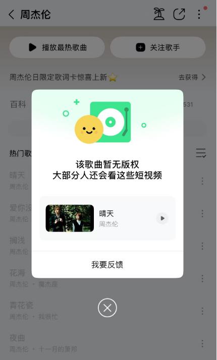 好似周杰倫、林俊傑、陳奕迅呢啲熱門歌手嘅歌都聽唔到!成個歌單都變咗灰色!
