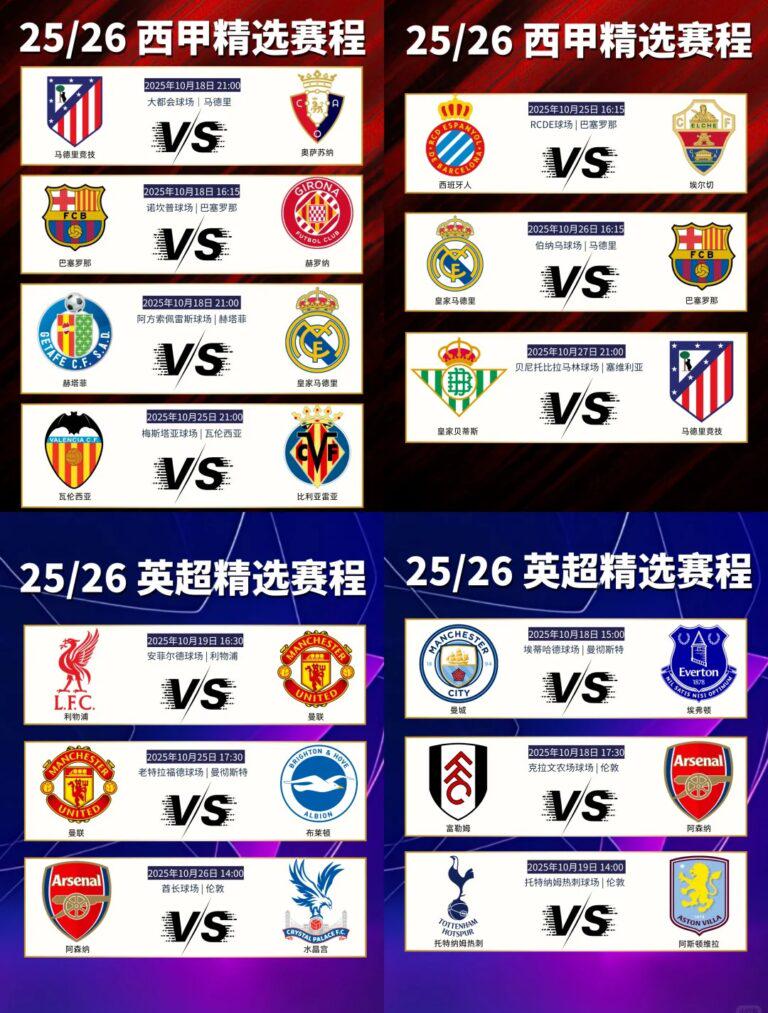 一. 歐洲足球十月激戰日程精選