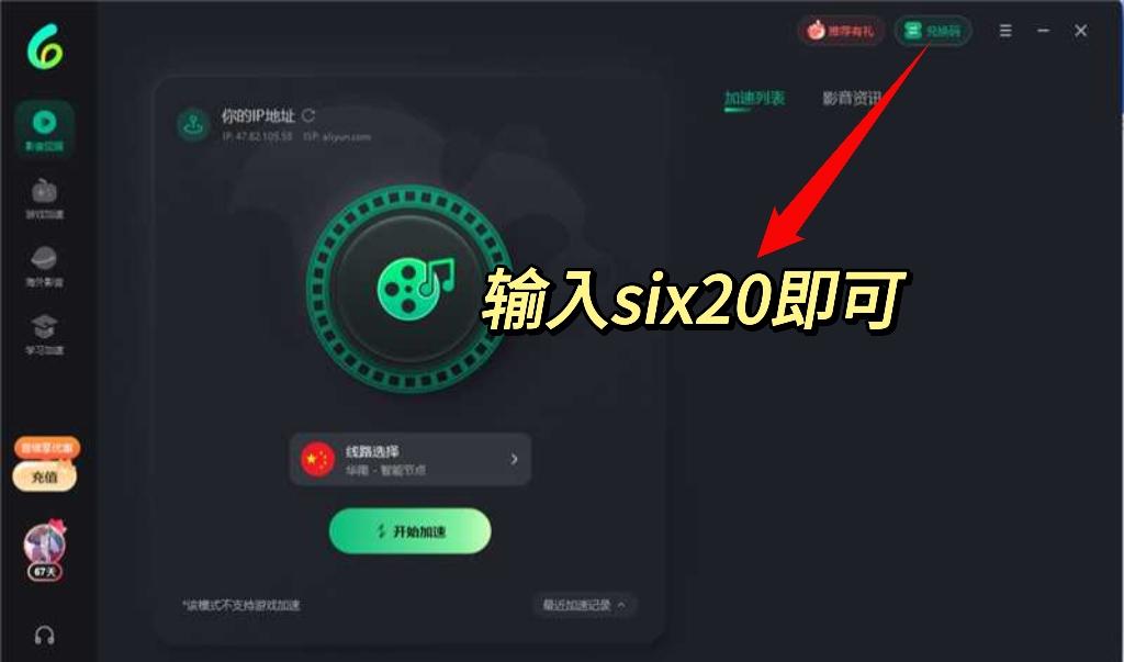 Sixfast下載註冊後,右上角搵到兌換碼位置,輸入six20就可以獲得72小時使用時間,記得要先兌換先至可以正常使用