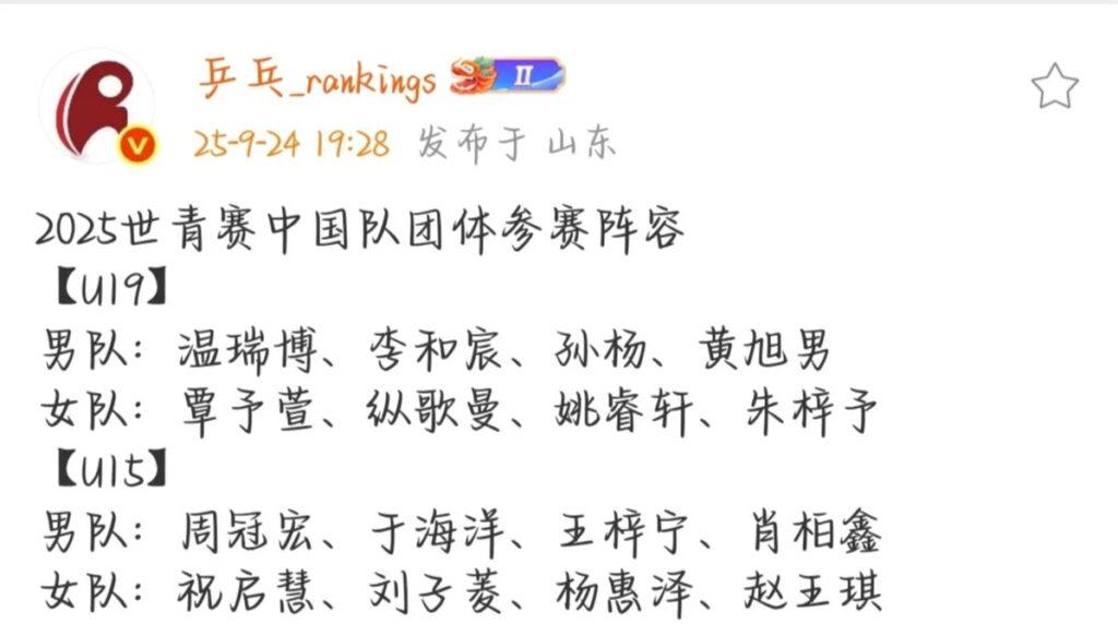 🔥 地表最強「後生仔」集結!2025乒乓球世青賽即將開鑼,國乒8小將衝擊14金