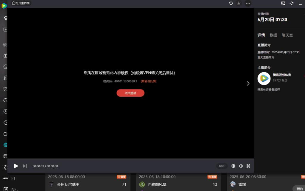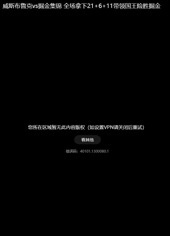 由於各個地區同國家嘅服務商唔同,各地嘅區域調整亦都有差異,國內正常播放嘅NBA比賽直播同回放等其他賽事嘅中文流直播,喺部分地區就冇辦法正常收睇。當你喺海外地區使用國內平台收睇直播嗰陣,就會出現好似下圖顯示「您所在的地區 暫不支持的」嘅問題。