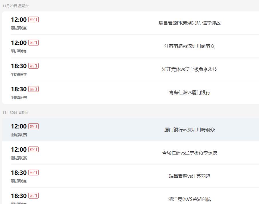 今期羽毛球超級聯賽嘅賽事已經火熱展開,各隊精英選手齊聚一堂,準備喺賽場上大展身手。以下係今日嘅賽程安排同埋所有參賽隊伍嘅詳細名單,等大家可以清楚了解邊啲高手會出戰。