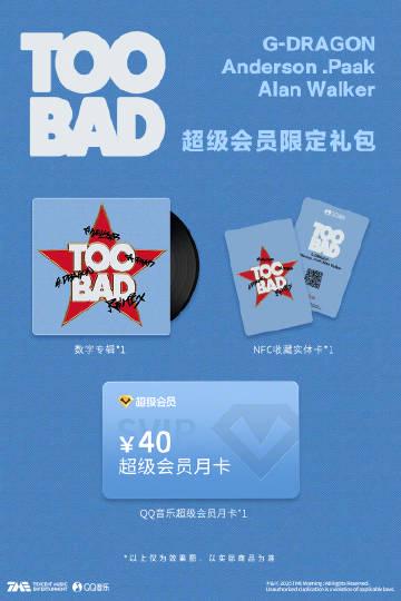 說回這次GD的新歌。G-DRAGON、Alan Walker,再加上Anderson .Paak,這陣容簡直是夢幻聯動。官方預告裡說要「重塑」《TOO BAD》,光是想想那個融合了權志龍獨特唱腔和Alan Walker電子音效的Remix版本,就讓人心癢難耐。更別說還有超級會員限定禮包,數字專輯、NFC實體卡、會員月卡……這些對海外粉絲來說,原本應該是觸手可及的狂歡,現在卻成了看得見、摸不著的遺憾。