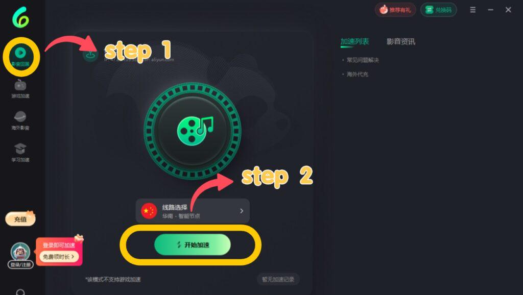 記得先兌換,然後左邊搵到**【影音回國】-點擊【開始加速】**