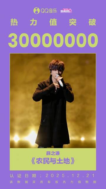 • 薛之謙 的《農民與土地》,在平實的旋律中構築了深沉的情感宇宙,熱力值已突破3000萬大關。他另一首《友情提示》,則唱出了那些未曾說出口的溫柔與痛楚,細膩入微。