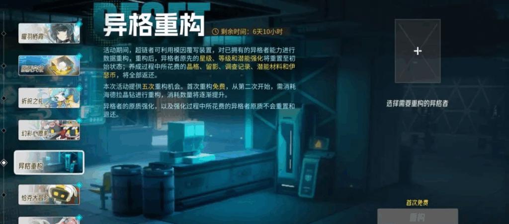 ■ 活動期間,可以選擇需要重構嘅異格者,將已有嘅星級、等級同潛能強化重置至初始狀態;養成過程中所花費嘅晶格、留影、調查記錄、潛能材料同伊瑟幣,將會全部返還。