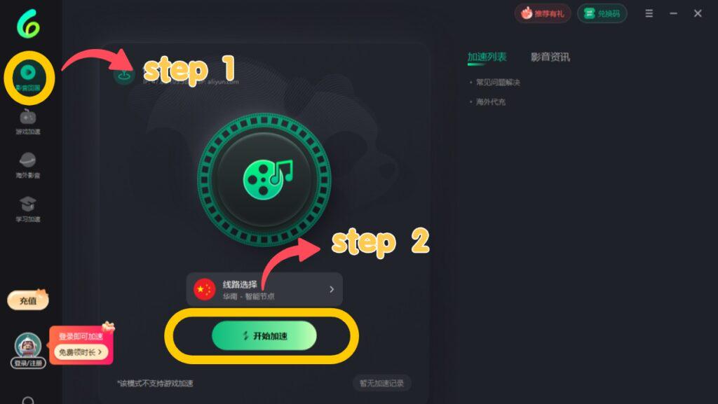 記得先兌換然後再左邊搵到**【影音返國】-點擊【開始加速】**