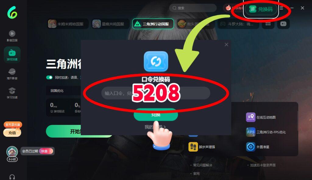 第四步:記得先兌換然後再左邊搵到**【遊戲加速】-上方搜尋欄【遊戲名稱】-點擊【開始加速】**